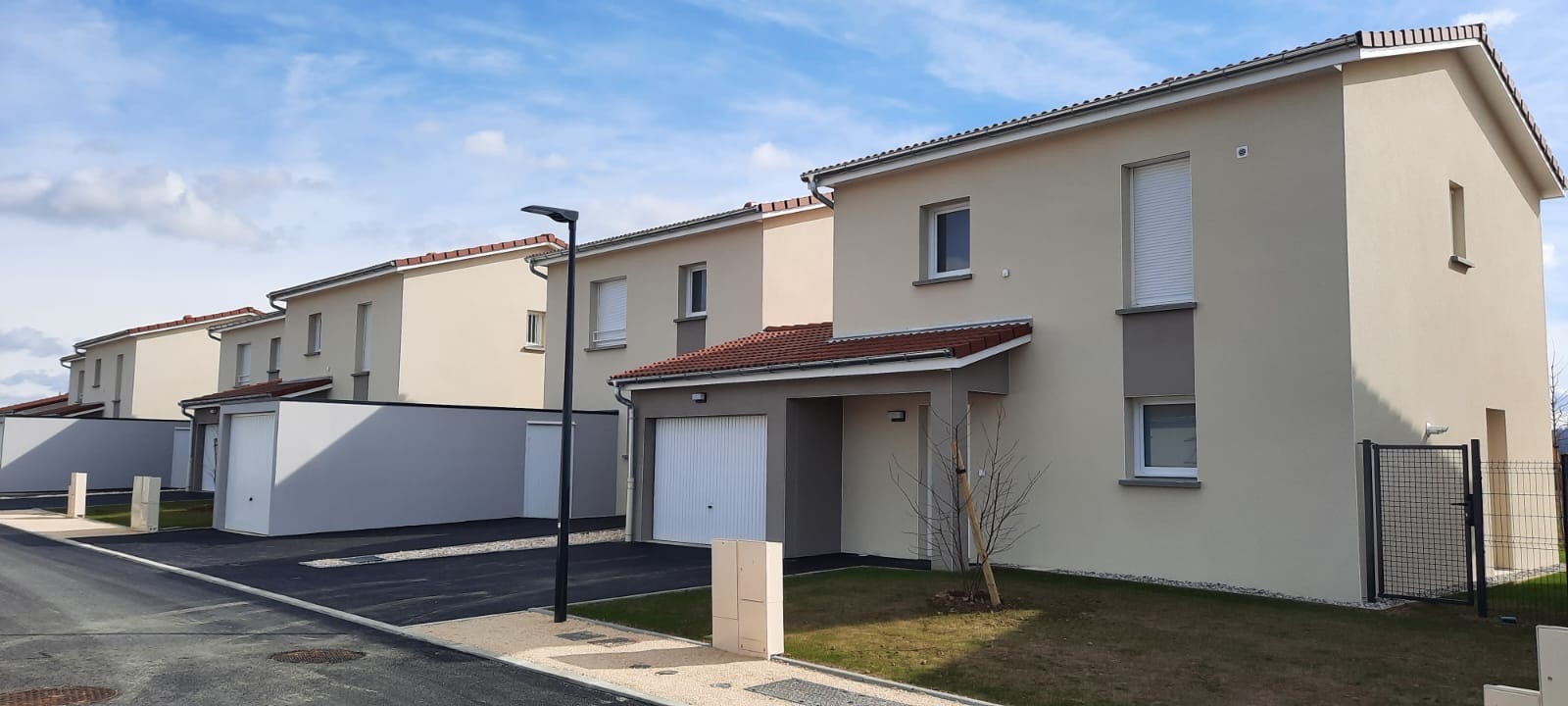Ces logements PLAI et PLUS en RE2020 se composent de 2 T3, 3T2 et 5 garages préfabriqués.